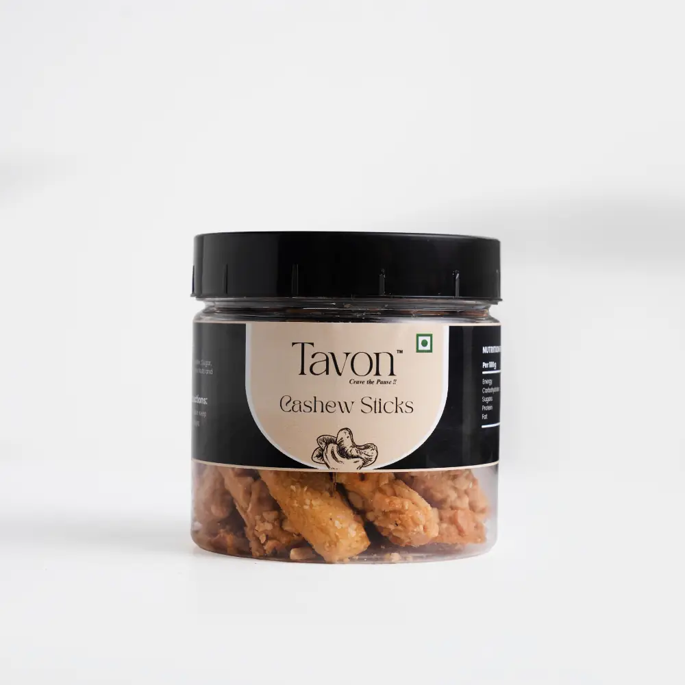 Buttery biscuit sticks topped with golden cashew pieces. Rich and delightful. A snack with royal charm.