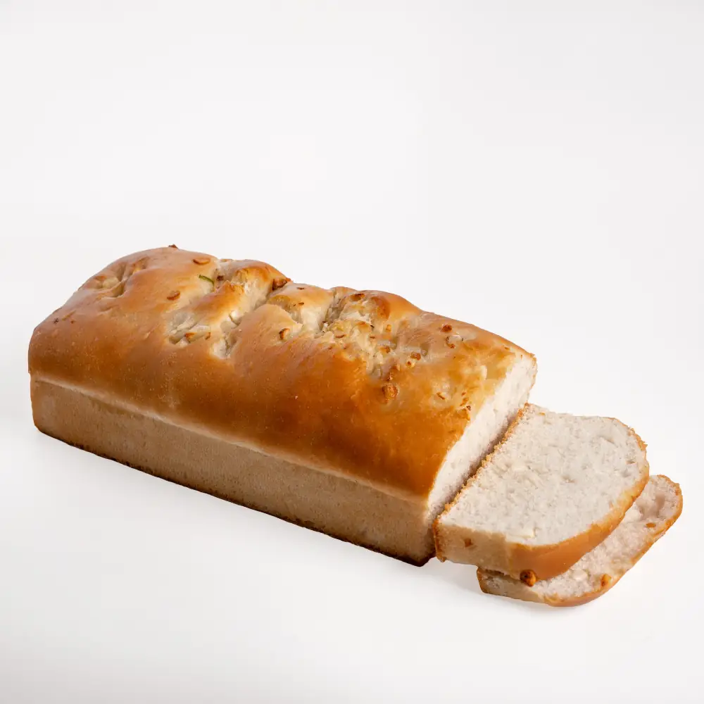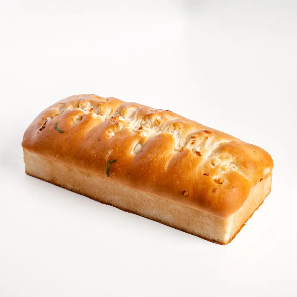 Rich with roasted garlic and butter, baked into a soft loaf. Bursting with aroma and flavour. Perfect as a side or base for bruschetta.