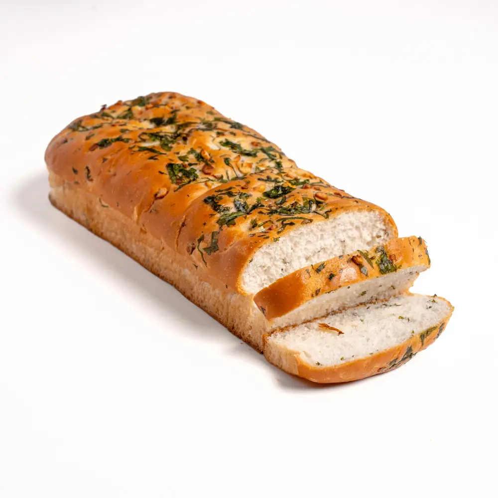 A zesty fusion of mint and garlic in every bite. Adds a refreshing twist to traditional garlic bread. Excellent for pairing with soups or pasta.