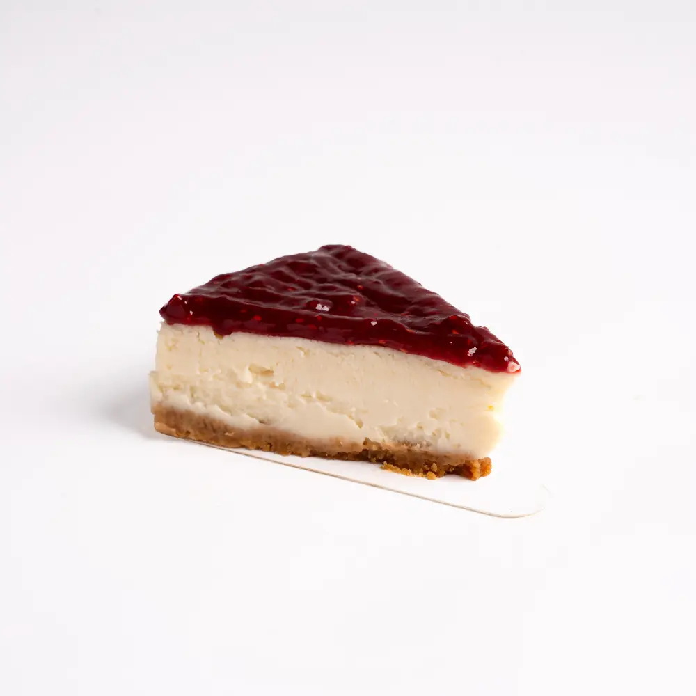 A buttery biscuit base with light, creamy cheesecake and a tangy raspberry swirl. A fruity twist on a dessert favourite.